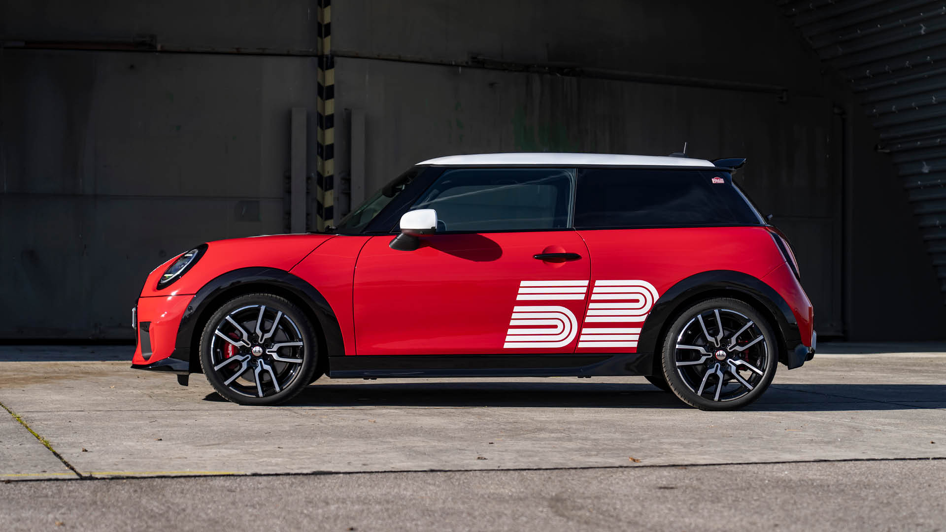 ​The Mini Cooper S Victory Edition is inspired by the 1965 Monte Carlo Rally car and comes with a Chilli Red exterior paintwork. A white stripe extends from the bonnet to the roof and the rear. Additionally, a white ‘52’ number is seen on both sides of the car, which is taken as a reference from the original rally car displayed in 1965.