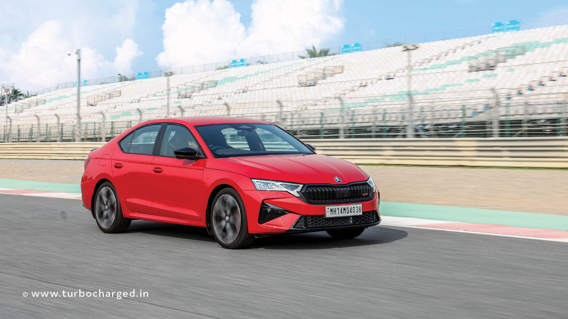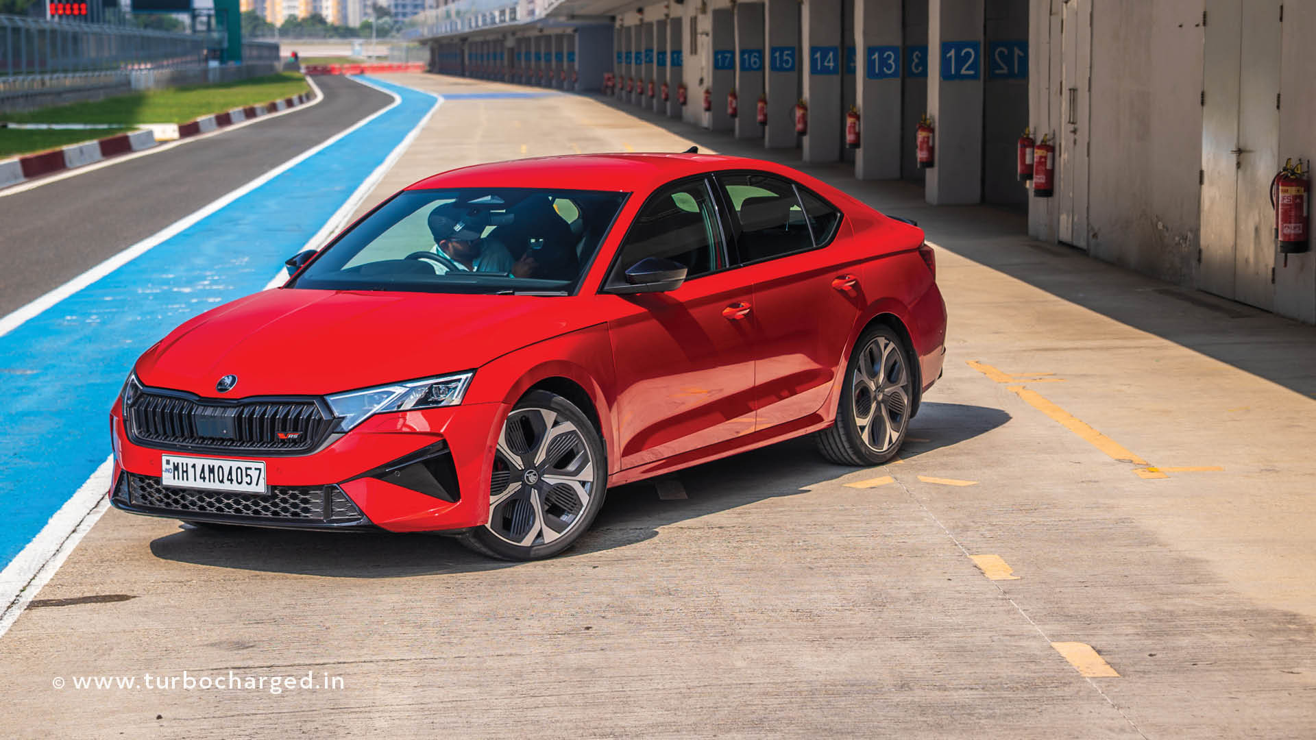 That means you cannot buy the car even if you want to, and will have to wait until next year when Skoda India reopens bookings. This didn’t stop us from putting pedal to metal in the new ‘Octi’ RS though – at the Buddh International Circuit, no less. The RS is one of the most revered names in enthusiast circles after all, and also one that tuners across the nation hold in high regard. And with 265PS on tap, straight out of the showroom, this one has a lot going for it already, which meant a racetrack was the best place to experience the car. The design is typical of what we’ve known the Octavia to look like for the past few years, and it certainly looks very appealing. Needless to mention, the design is based on the regular Octavia sedan sold internationally, which received a facelift in 2024.