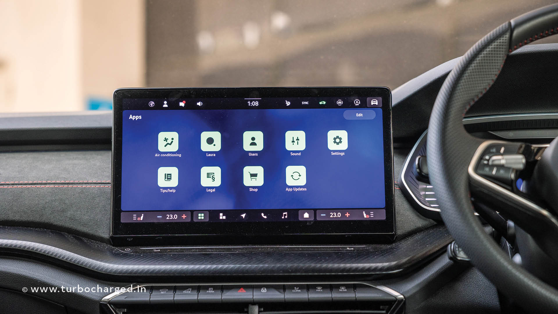 Rear seat occupants also get dedicated climate control system along with a foldable arm rest that integrates cup holders which pop out, helping add to the ‘family car quotient’. As always, the boot is massive too and you get 600 litres of volume, which is very impressive. At its price, the Octavia RS also comes with all possible bells and whistles too. Both front seats are electrically adjustable and get memory and massage functions. That said, they are heated but do not get ventilation! The 13.0-inch touchscreen feels slick and easy to use in terms and also offers wireless Apple CarPlay and Android Auto connectivity, but sadly it’s also where you need to access climate control settings from – we would have preferred physical buttons or even better, rotors for the same. On the features front you also get 360-degree view, Matrix LED headlamps and more, along with a 11-speaker Canton audio system, 10 airbags (including one in between the front seats) and Level 2 ADAS.