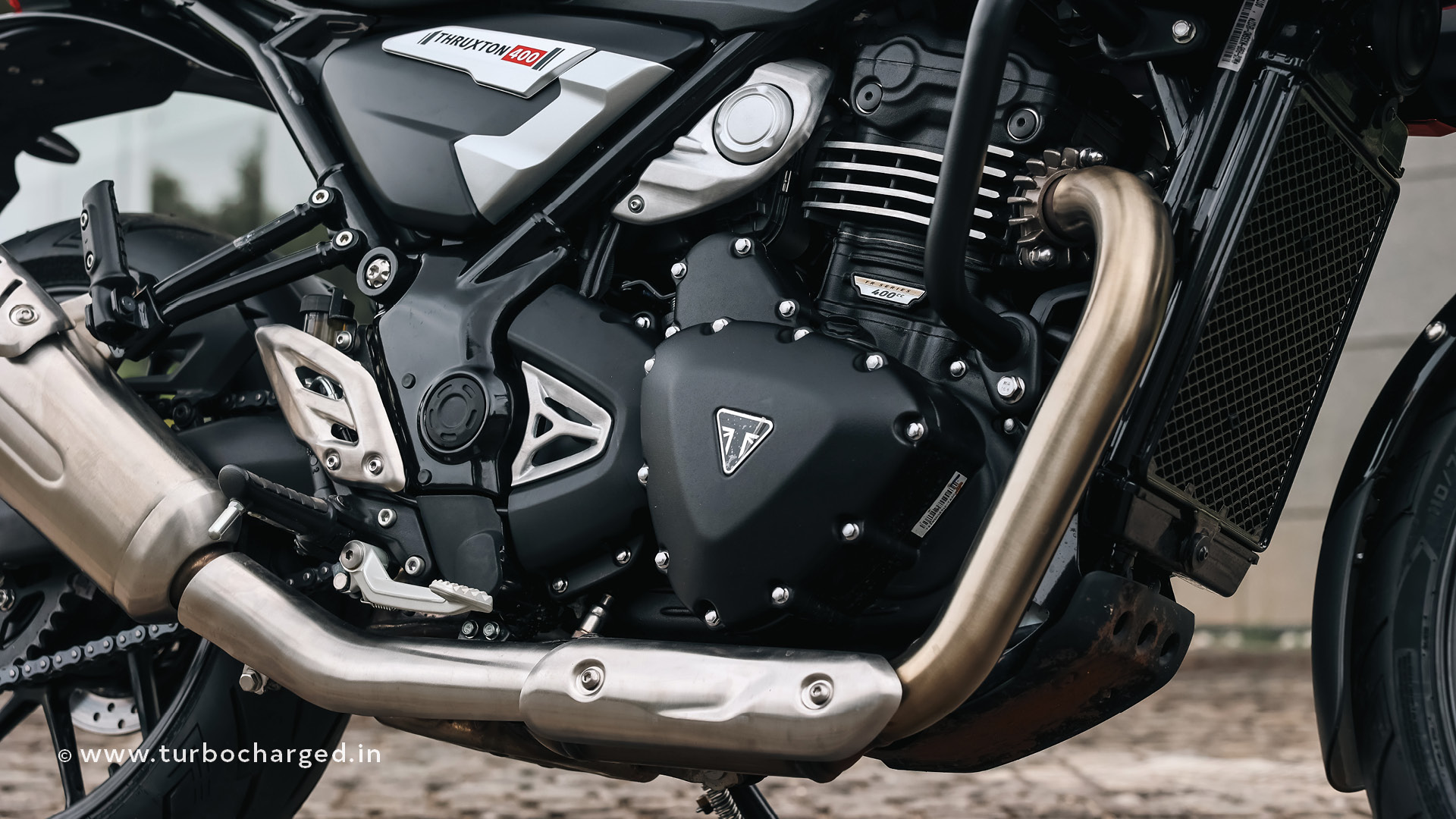 Powering the Thruxton 400 is the most potent version of the TR-series engine yet. This 398cc single-cylinder, liquid-cooled motor produces 42PS of power and 37.5Nm of torque. While it is the same engine architecture seen in the Speed 400, Triumph has extracted an extra 2 PS here by making mechanical changes to the camshaft, air intake, and exhaust system. Despite carrying 5 kg more weight than the Speed 400, it accelerates from 0 to 100kmph in just 6.7 seconds, which is a full second quicker than its roadster sibling.