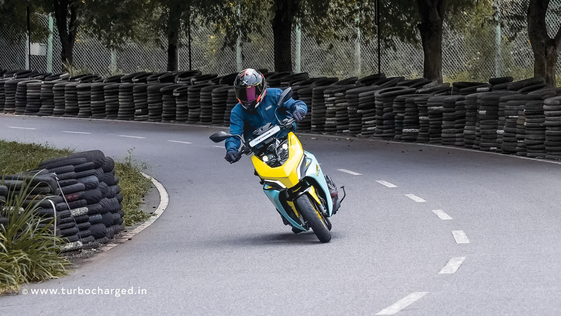 The rider’s triangle feels excellent, thanks to the well-padded seat, an approachable seat height of 770mm, and the upright riding posture, with a spacious footboard, which means you will be seated comfortably for the long-duration rides, should you choose to go on one onboard a scooter. City riding dynamics and pillion comfort are something that we will have to find out when we ride it outside of the confines of a track.