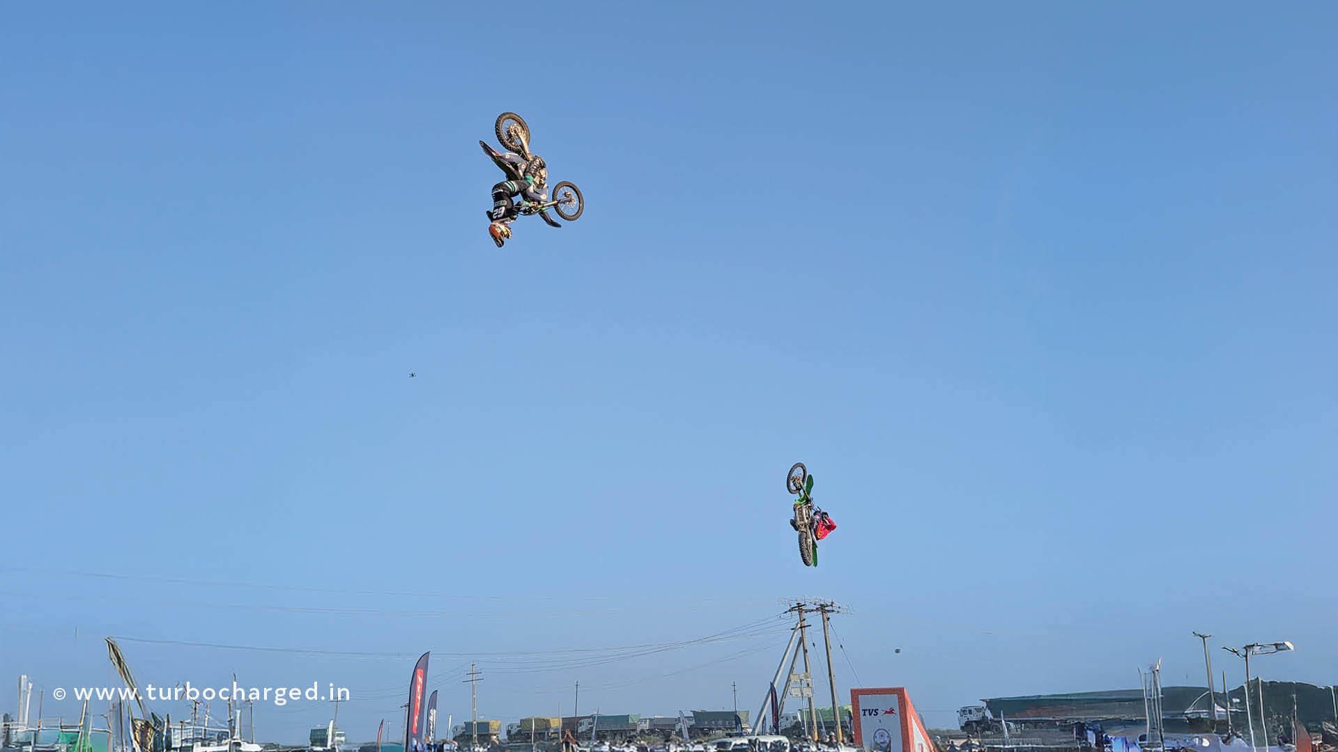 The next destination was the motorsports arena, which again required a bus ride back. After a brief introduction from the TVS team, I found myself gathered around the stunt arena where two professional stunt riders on their souped-up Apaches performed some amazing stunts. From there, I moved to the Ronin Drift-R arena where riders were sliding their rear wheels out on the oval track, putting their skills to test on the flat track, besides a tough obstacle course designed to test the capabilities of the Apache RTX, the first adventure tourer motorcycle from the homegrown manufacturer. But the dust hadn’t settled yet as I was about to witness some gravity-defying jumps and backflips at the FMX arena. With jumps over 40 feet in height, it sometimes made me wonder if gravity ceases to exist for people who have adrenaline shots for breakfast.