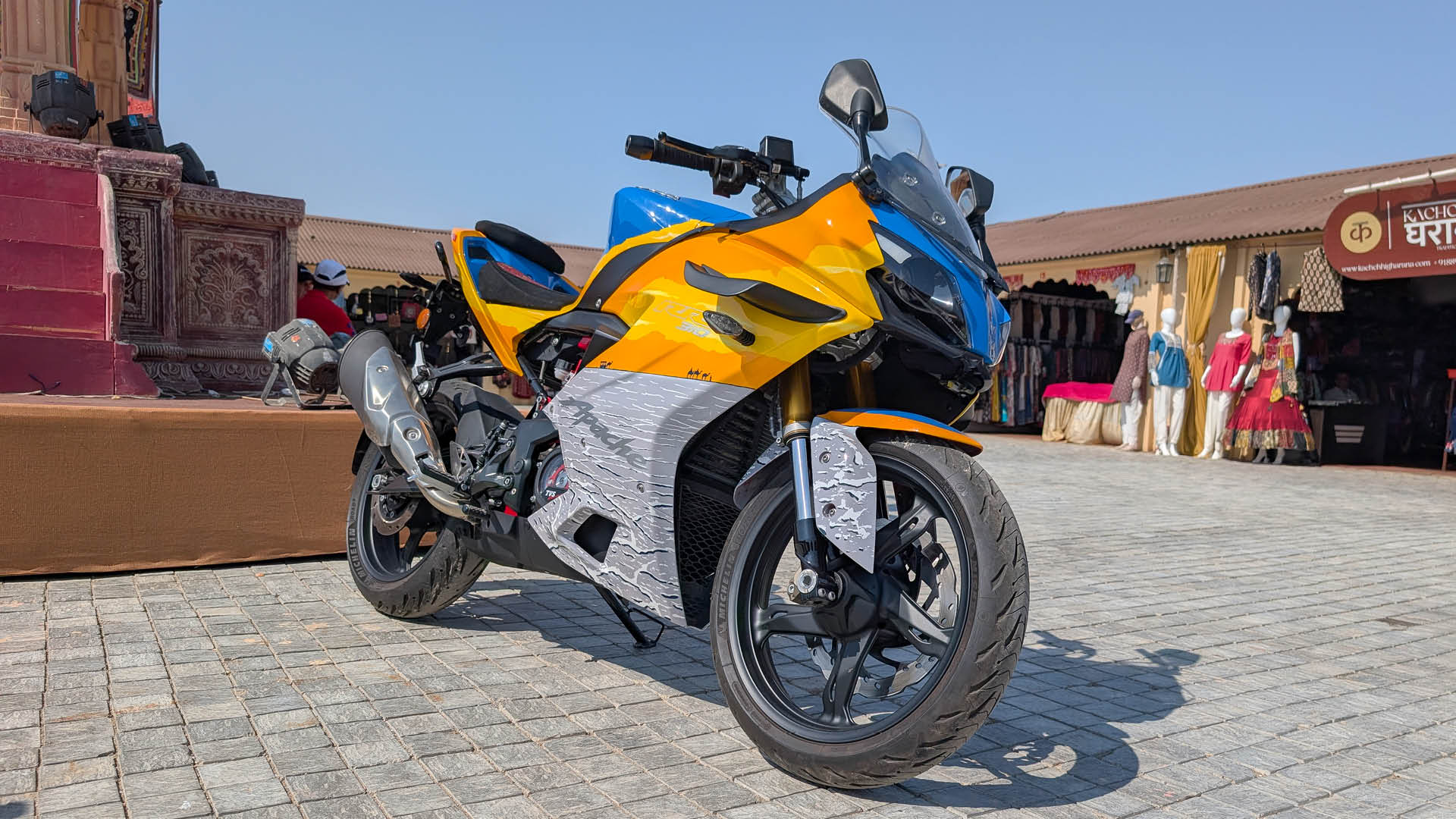 As the sun started getting closer to the horizon, it was time for the main event where TVS was about to unveil some special motorcycles. The Rann of Kutch edition motorcycles unveiled at the event drew serious inspiration from the region, amalgamating its landscape, culture and art forms. The Apache lineup and the Ronin were specially prepared. From the blues of the skies to the colours of sunset and the barren salt desert, every motorcycle seemed to exude the region’s beauty. However, these motorcycles were more cosmetic in nature, with no changes to the mechanicals. TVS does not plan to produce these motorcycles on a larger scale, and hence there was no price announcement either.