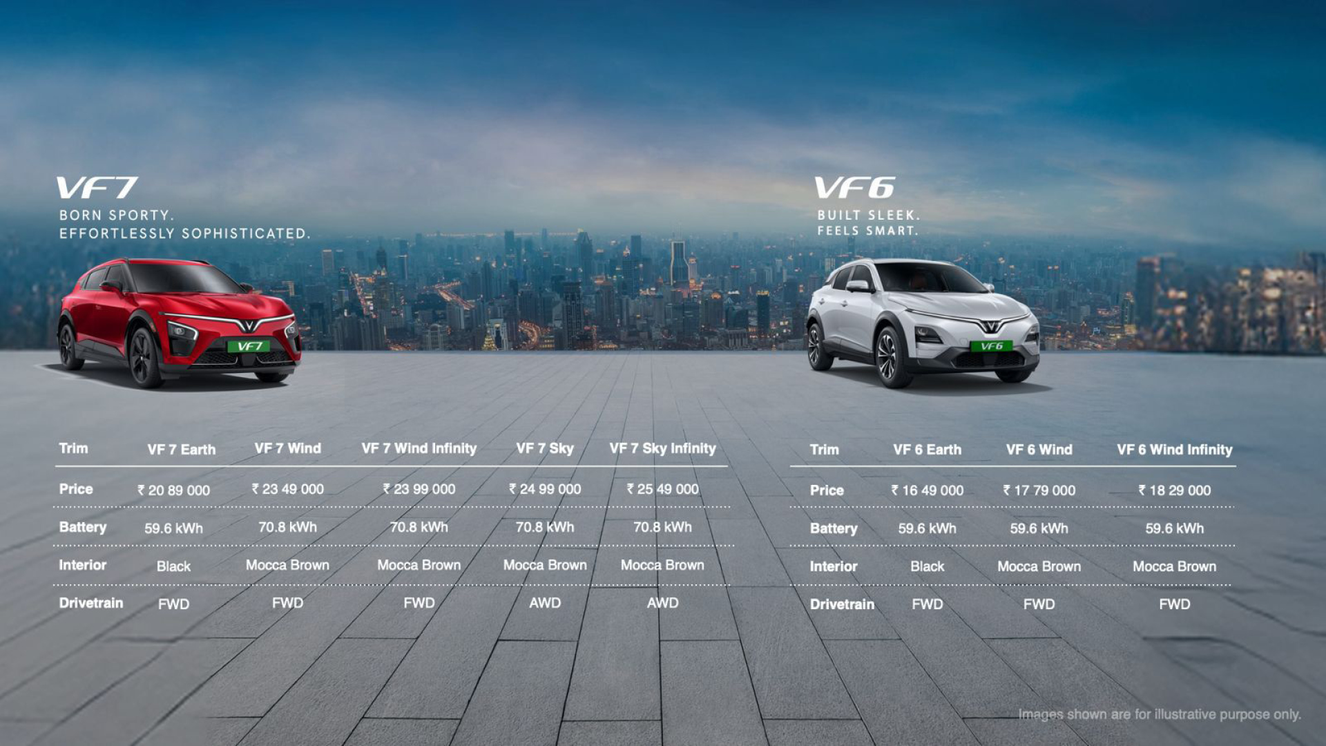 VinFast, the Vietnamese ev manufacturer has launched its first models in India, and this two-car lineup comprises the VF6 with a starting price of ₹16.49 lakh and the VF7, the current flagship of the lineup with prices starting from ₹20.89 lakh, both ex-showroom. The full price range is below: