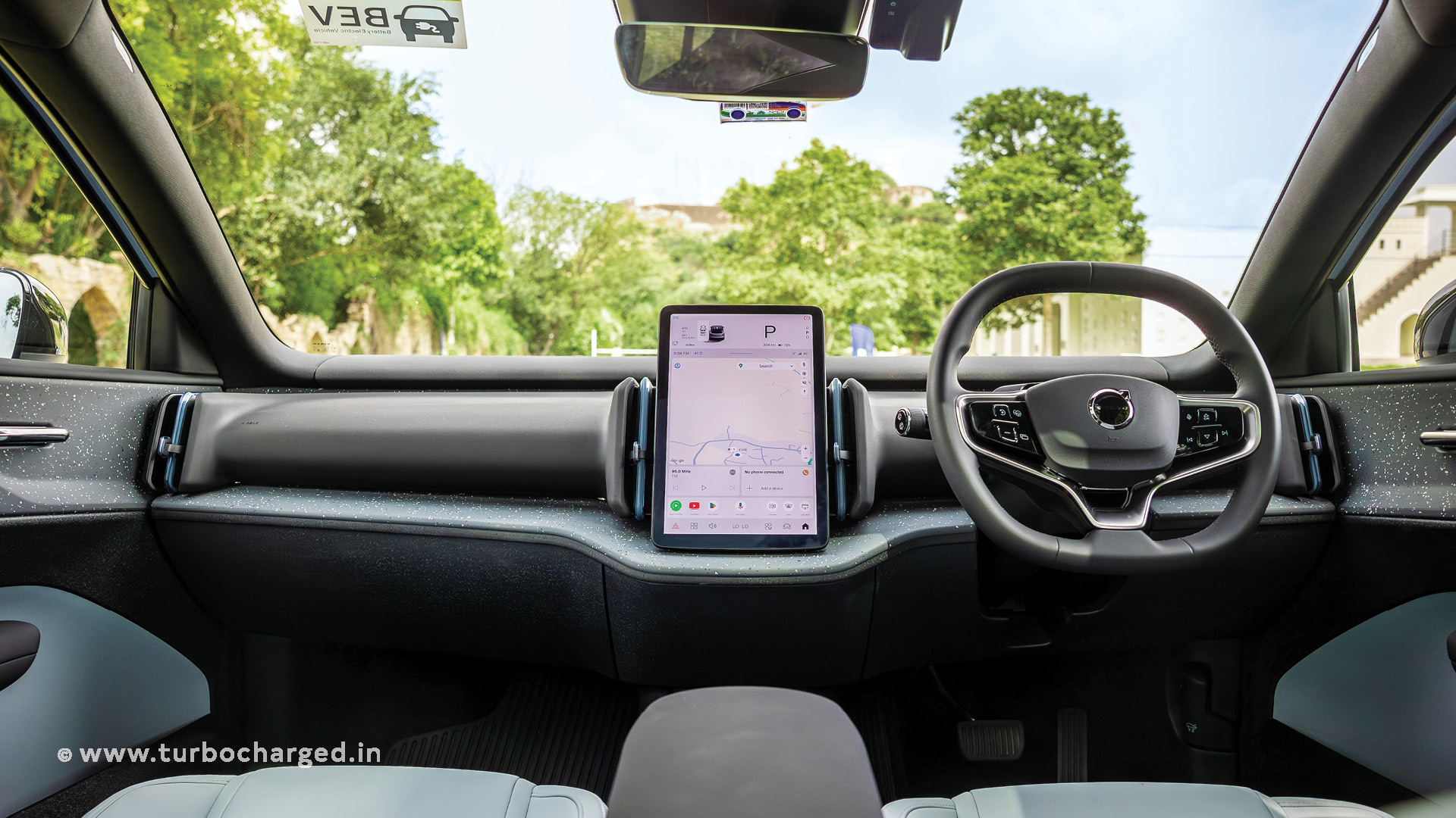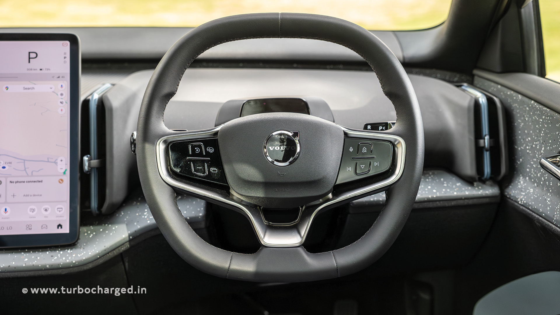 Volvo is only launching the single motor version in India, powered by a 69kW battery pack that uses energy-dense, NMC cells and is liquid-cooled. The motor puts out 272PS and 343Nm, so acceleration is brisk, and claimed 0-100kmph time is just 5.7 seconds. Power delivery is linear and throttle responses are smooth, and almost similar to that of a refined petrol engine. Oddly, there are no driving modes and regeneration levels cannot be changed either, though you do get a single-pedal mode. Claimed range as per the WLTP cycle is 480km, so one can expect around 400km in the real world. And given its 400V architecture, the EX30 will allow charging at up to 150kW; meaning you could charge the battery fully in just 25 minutes. Ride quality is firm, as you would expect of a European luxury car and an EV at that, but the bigger highlight is the EX30’s sporty handling, without sacrificing comfort. Fast corners are handled beautifully, and you also get soft, medium and firm modes to choose from for the steering.